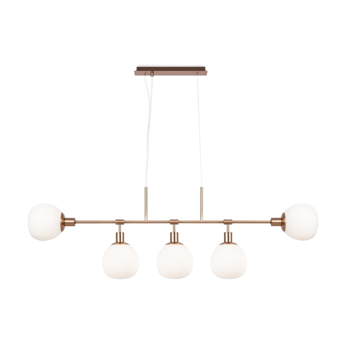 Белые плафоны из выдувного стекла похожи на жемчужины в обрамлении матового золотого или никелированного цвета металла. Серия представлена разными по размеру и применению моделями. Светильники можно использовать для общего и локального освещения, их конструкция максимально функциональна. У торшера и настольной лампы можно изменять положение плафона. Высота подвесных светильников регулируется длиной троса. У люстр центральная штанга состоит из трех частей, благодаря чему можно изменять высоту светильника. Дополнением коллекции являются потолочные светильники, которые максимально расширяют возможности использования свктильников серии в помещениях с различными переметрами.