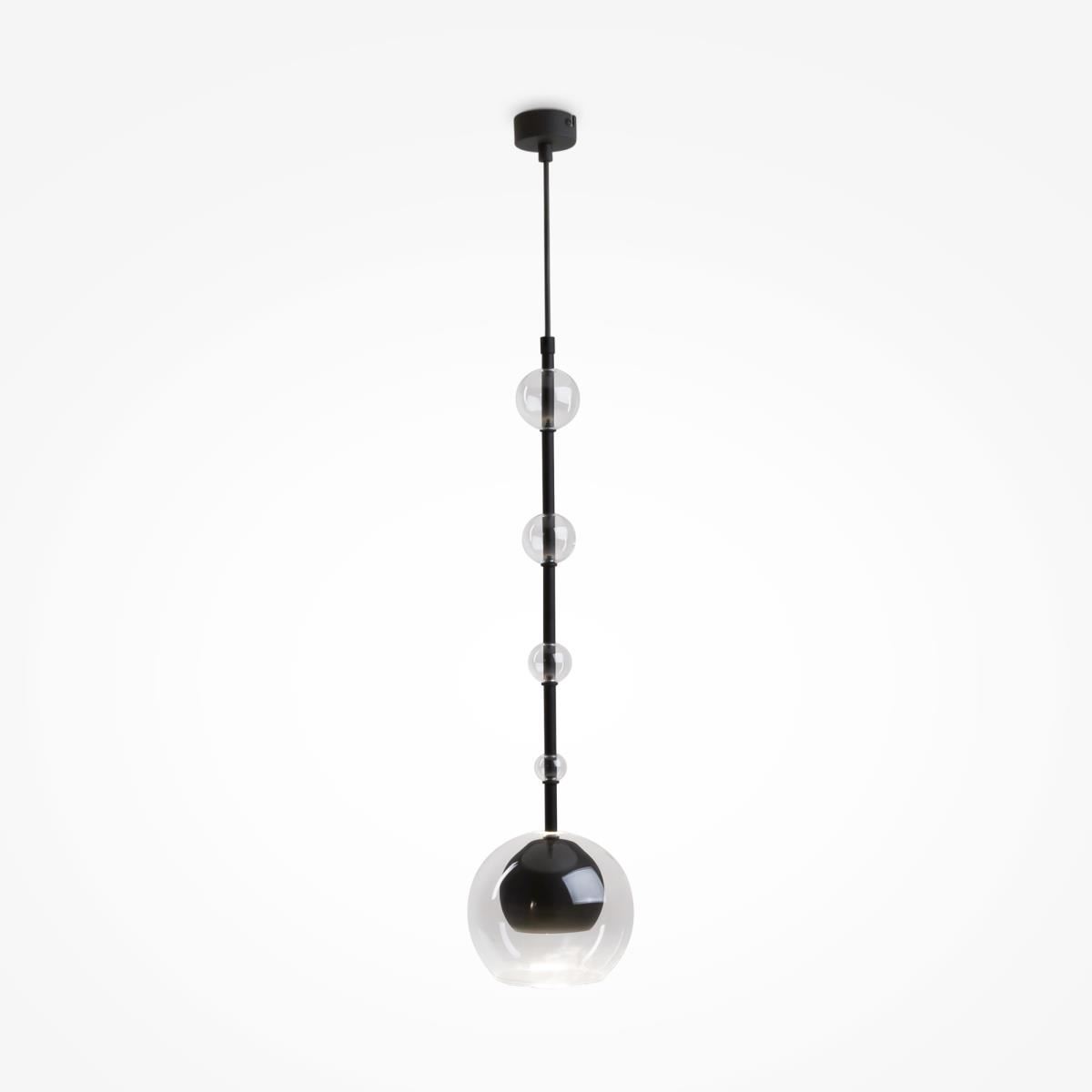 Арматура - металл, плафоны - стекло. Цветовый комбинации арматуры и плафона: черный + прозрачный, черный + янтарный, латунь + прозрачный. Элементы декора - выдувные "бусины" из стекла. Высота проводов регулируется. Источник света - лампа с цоколем GU10.