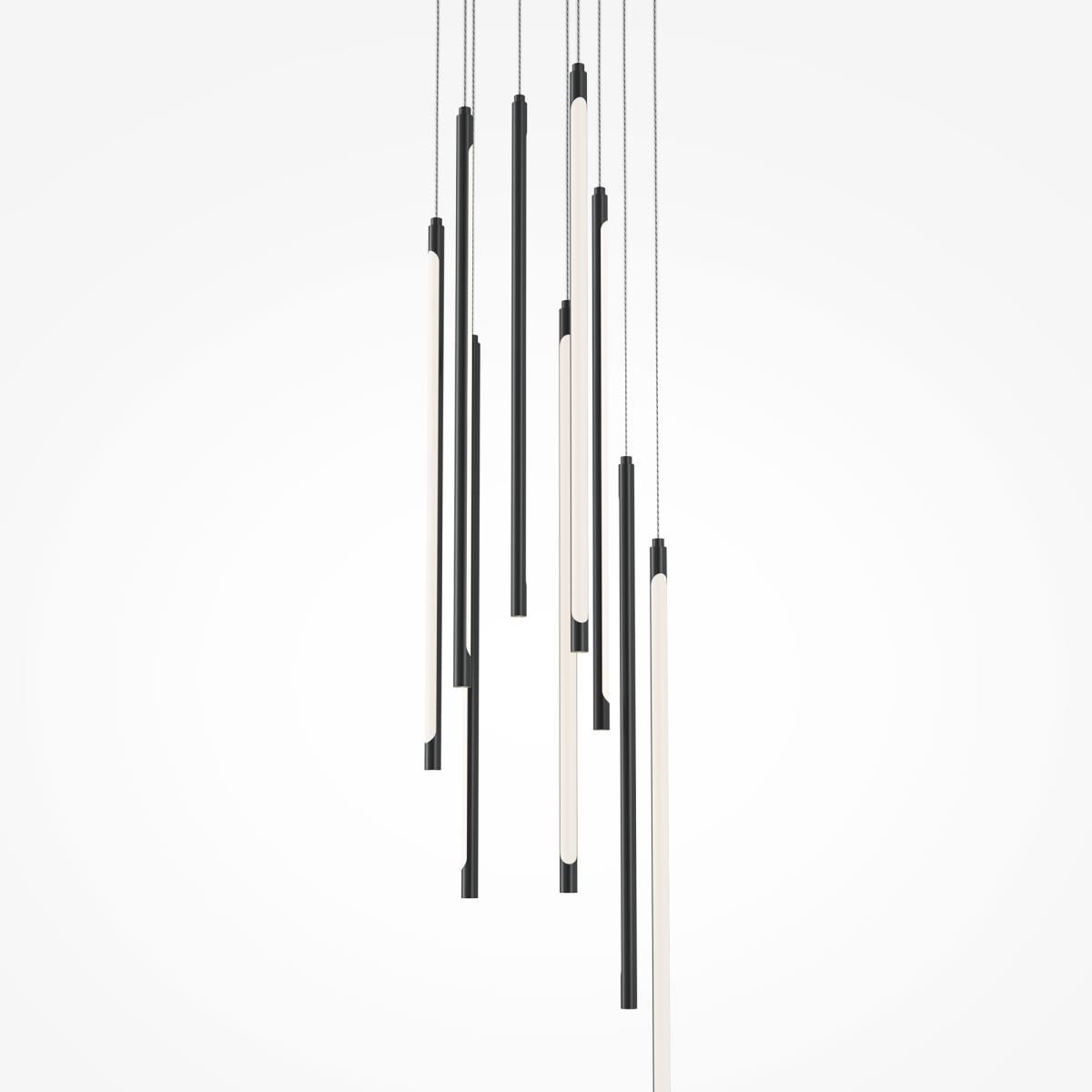 Материал арматуры - алюминий, цвет - черный, латунь. Изящные металлические "струны" в цвет арматуры со встроенным световым модулем прикрыты белым акриловым рассеивателем. Серия для акцентного и дополнительного освещения. Длина подвесных моделей регулируется. LED-источник света. Цветовая температура 3000К.