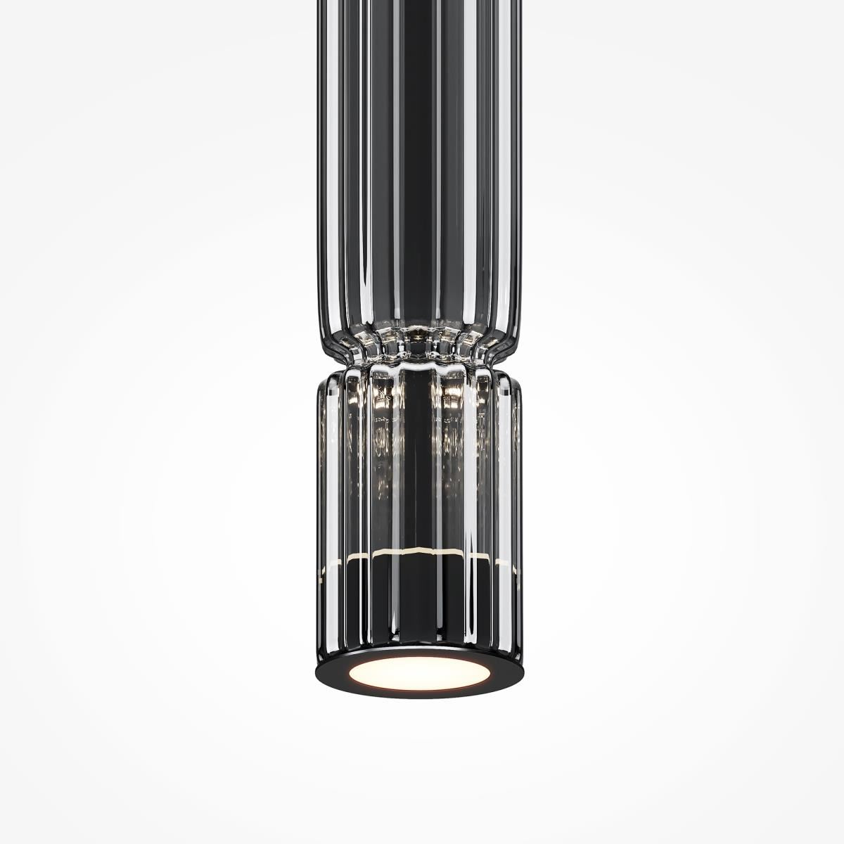 Арматура - металл, цвет - хром, черный. Цилиндрические плафоны из стекла с вертикальным рельефным рисунком в трех оттенках: прозрачный, коньячный, дымчатый. Метафора древнегреческих храмовых колонн в образе светильников. LED-источник света. Цветовая температура 3000К.