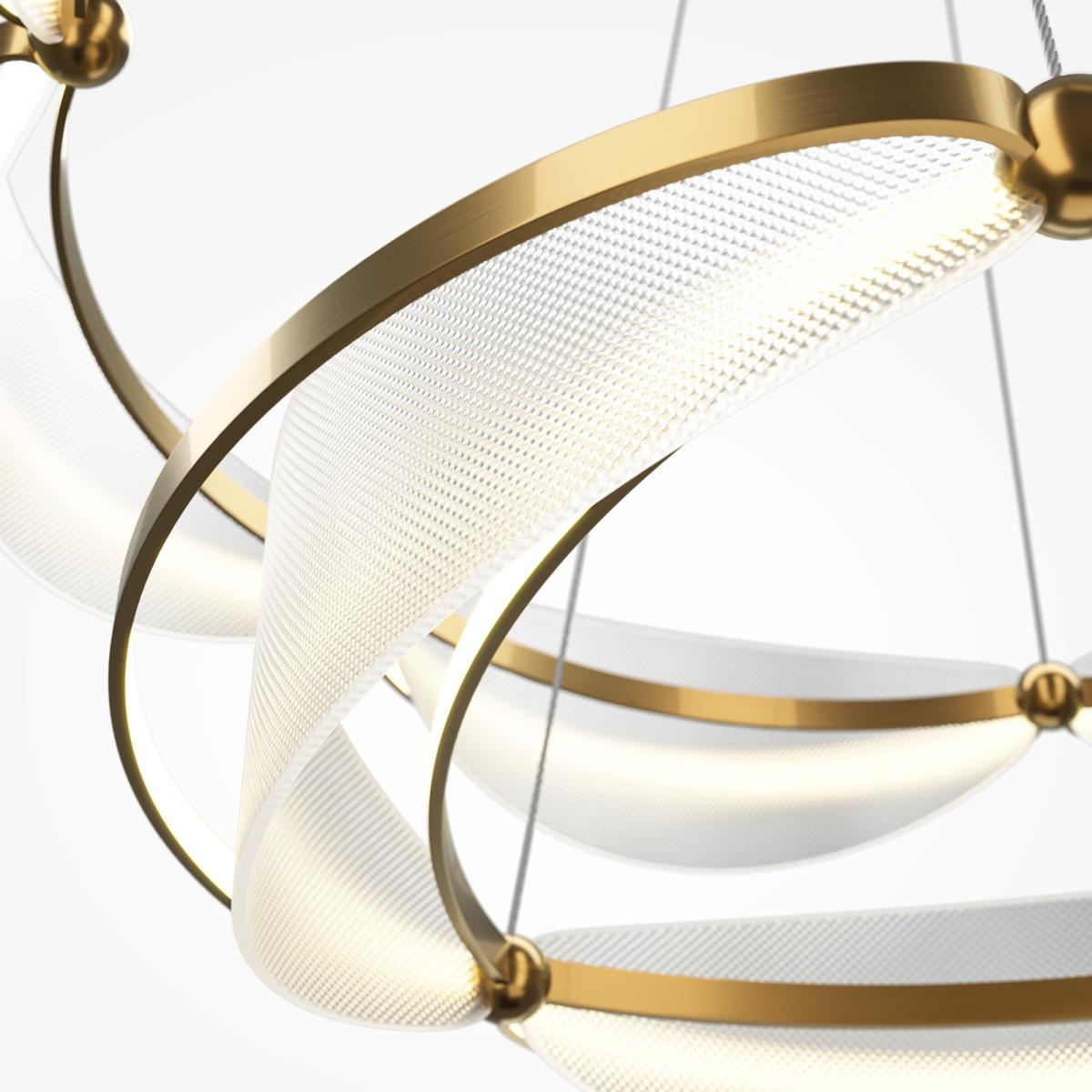 Материал арматуры - металл, цвет - латунь. Декоративные элементы из прозрачного фактурного акрила. LED источник света с цветовой температурой 3000К. Подвесные светильники — регулируемый провод длиной 3 метра. Настольная и напольная модель с функцией диммирования.