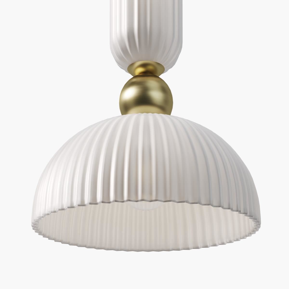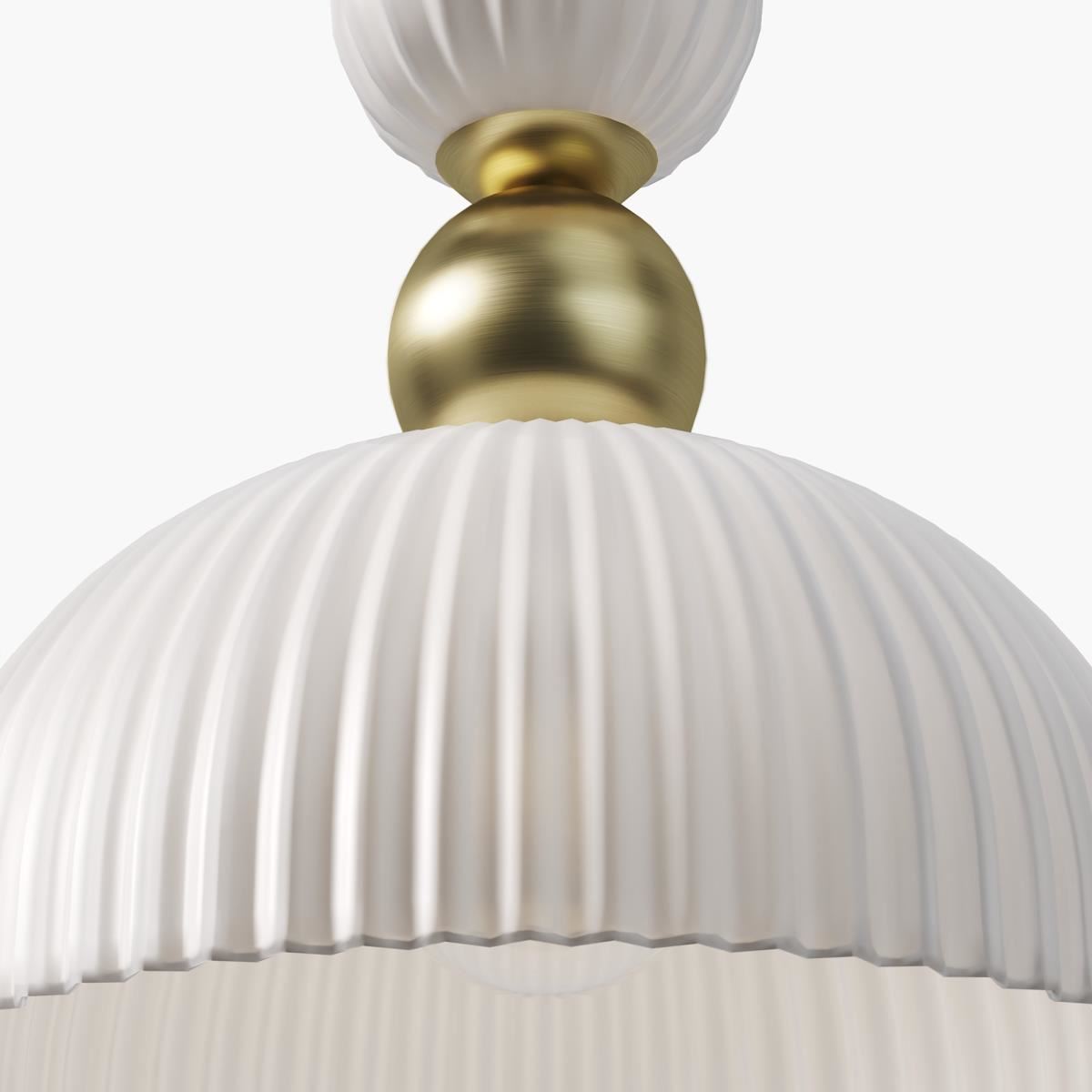 Арматура из металла гальванизирована в цвет латуни. Плафон из литого стекла с рифленой фактурой, оттенки – белый, коньячный, серый. Цоколь Е14.