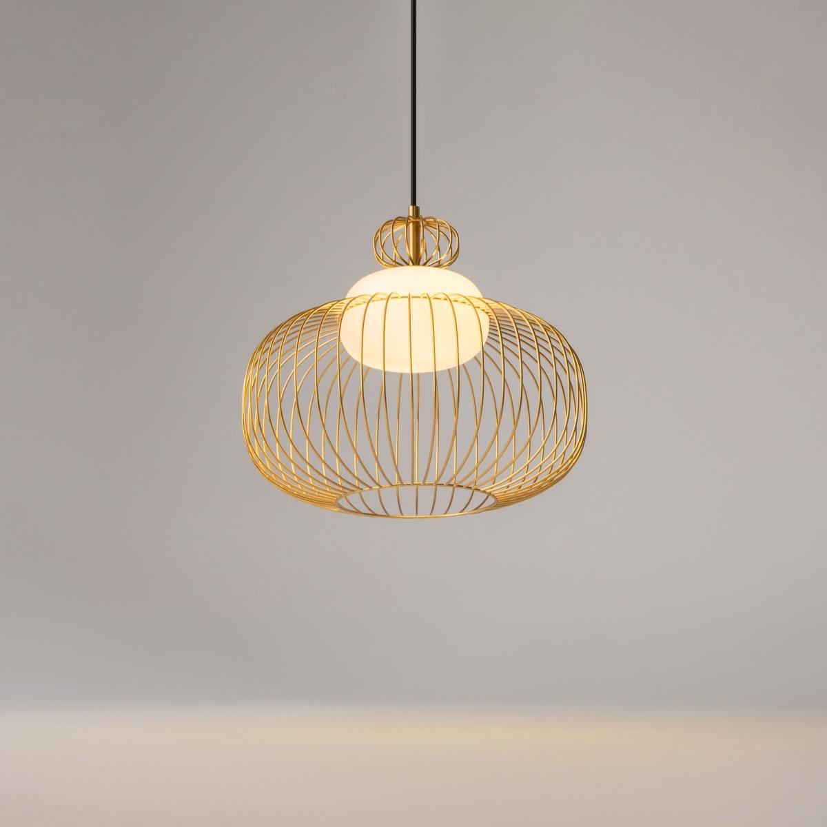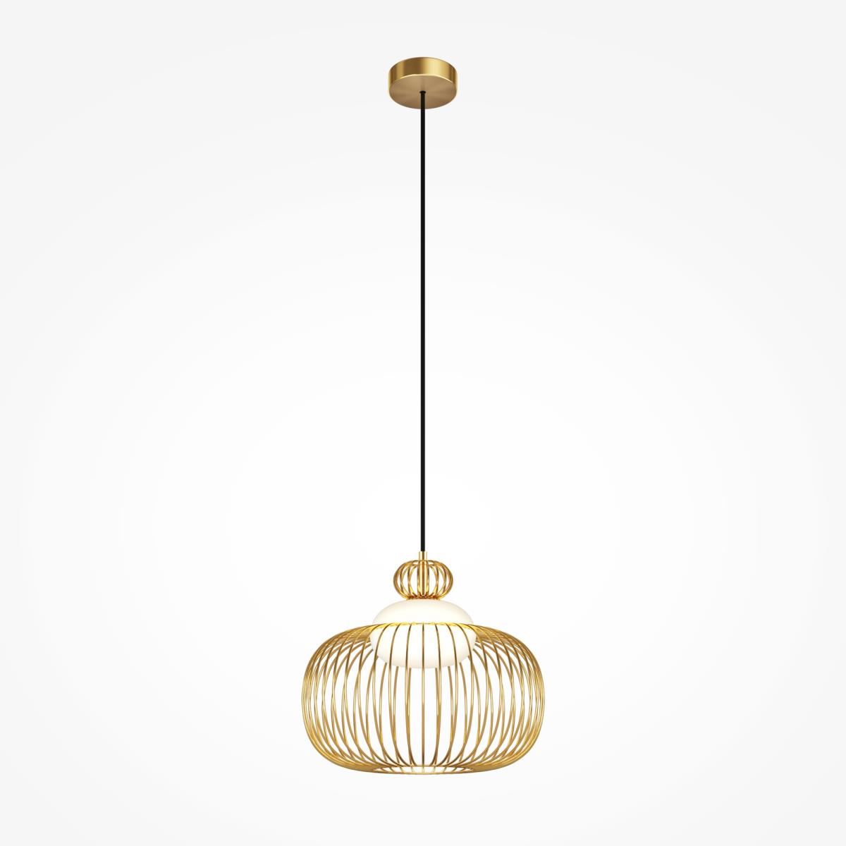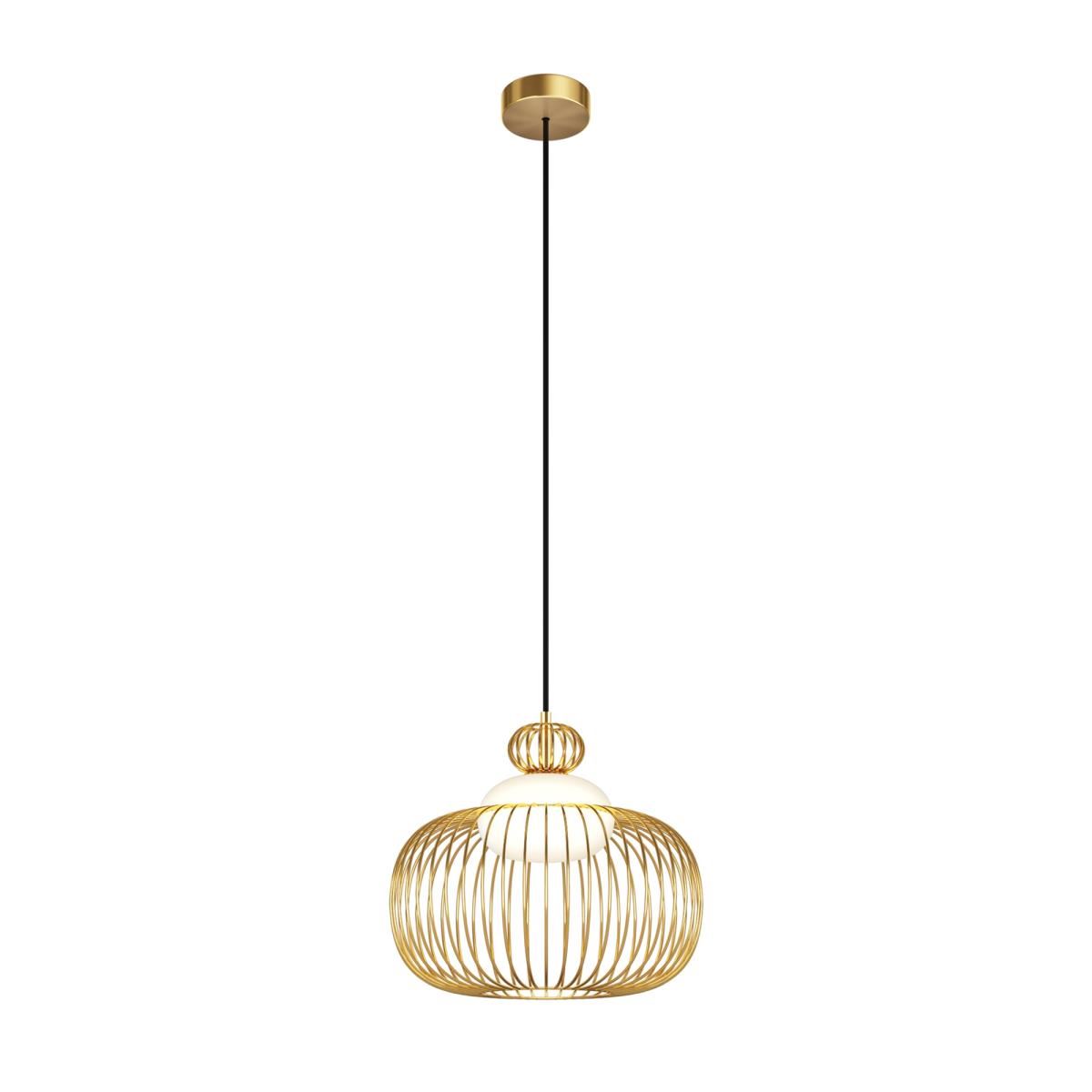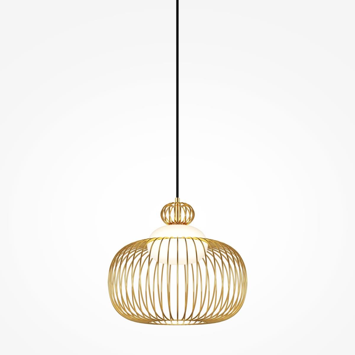 Цвет арматуры — латунь. Материал арматуры — металл. Абажур — каркас из проволоки, стекло. Оригинальный дизайн с эффектом левитации. Стеклянный рассеиватель со специальным выступом для крепления проволочного плафона. Два типа подвесных светильников: компактные со сменными лампами и крупный с LED-модулем для двунаправленного освещения. Провод длиной 3 метра для высоких потолков. Регулируемая высота подвеса. Универсальный дизайн для неоклассики, эклектики и фьюжн.