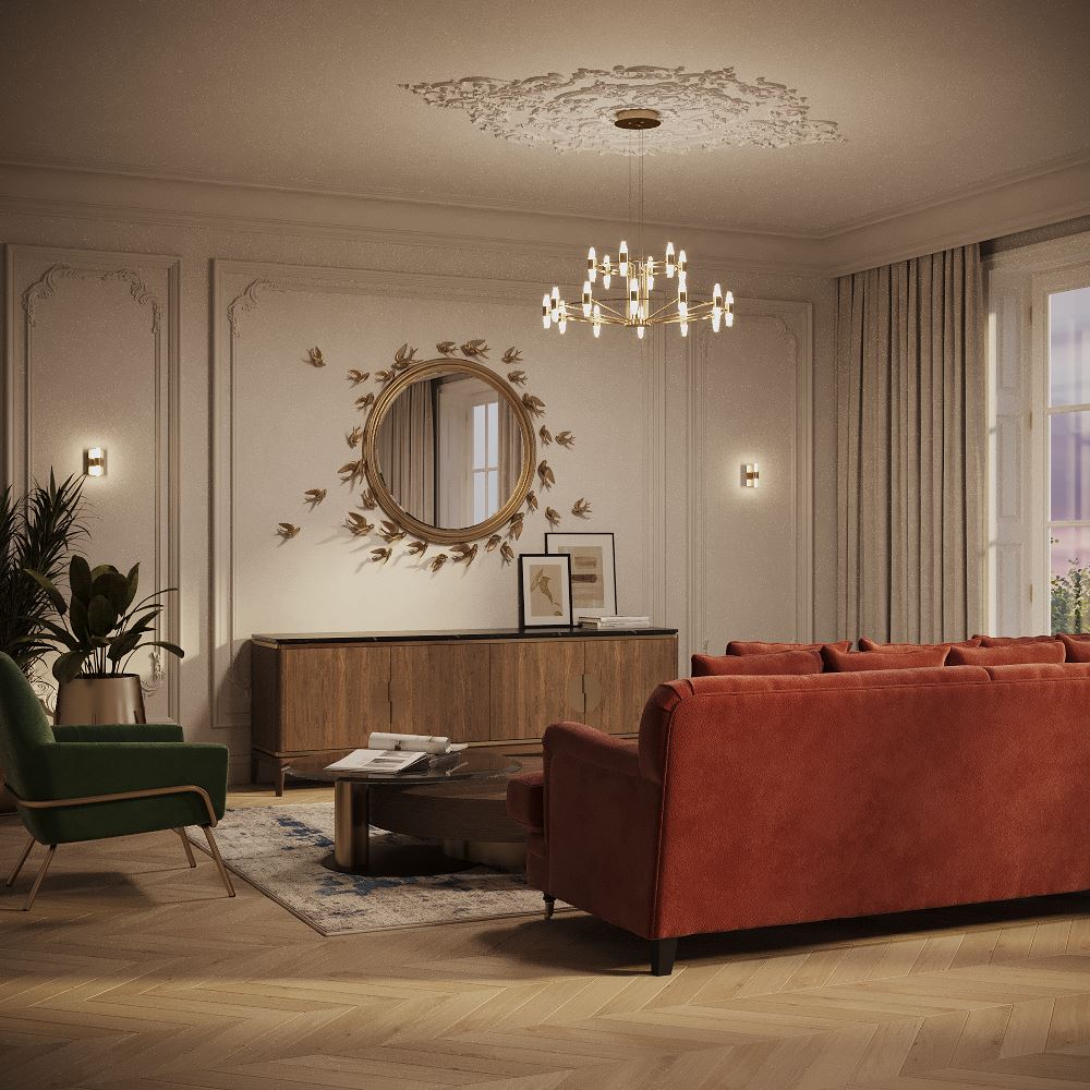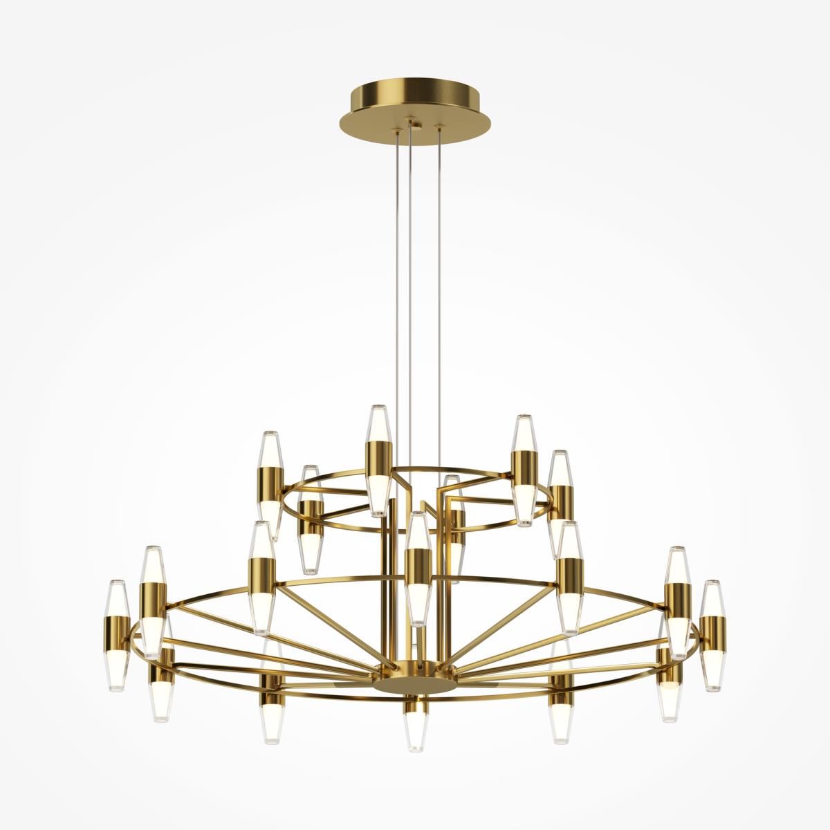 Цвет арматуры — латунь. Двойной плафон, выполненный из двух типов высококачественного акрила - матовый и прозрачный. Объемное освещение с равномерным распределением света во всех направлениях. LED-источник света. Комфортный для глаз свет при значительном световом потоке. Регулируемая высота подвесных моделей.