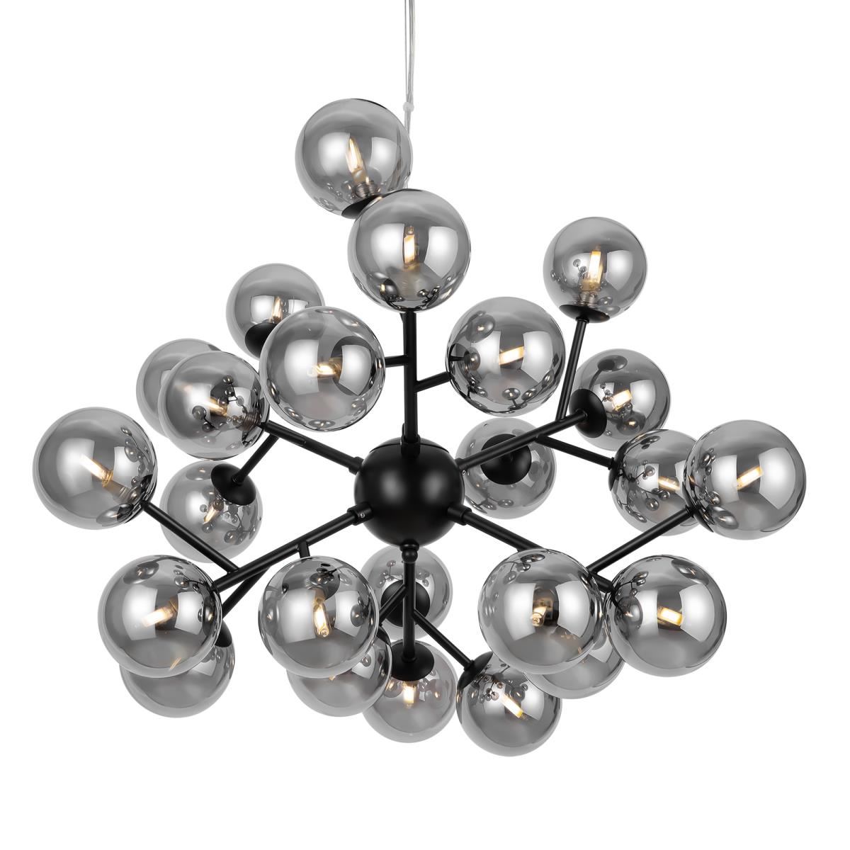 Масштабные скульптурные композиции, образованные многочисленными шарами из выдувного стекла, формируют неповторимый облик светильников серии. На полированных металлических ветвях установлены тонированные плафоны, которые мягко рассеивают и приглушают свет ламп. Модели серии представлены в трех цветах: золото, хром и латунь. Высота подвесных светильников регулируется длиной троса. Серия представлена потолочными, подвесными светильниками, и бра.