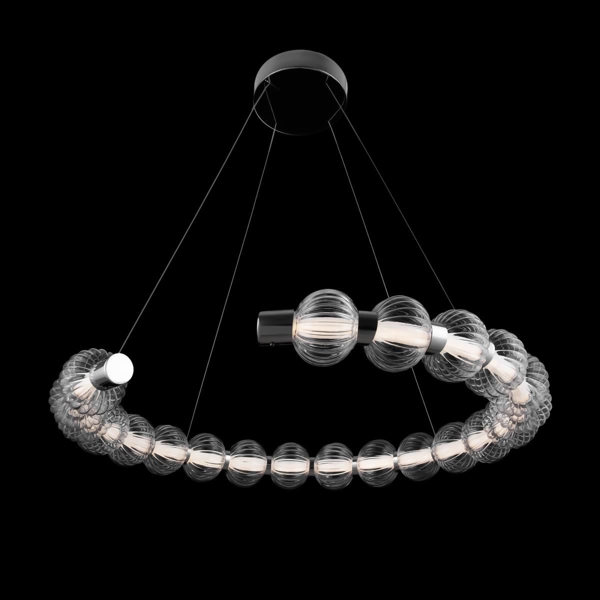 Этнические силуэты традиционных африканских украшений, наделенных тайным смыслом, легли в основу дизайна серии Amulet. Символика оберега, приносящего удачу и являющегося защитником дома, органично укладывается в канву современных интерьерных трендов, что подтверждают несколько международных премий. Акцентные декоративные элементы в виде рельефных сфер выполнены из литого стекла. Декор добавляет композиции визуальной легкости. Источник света – светодиодная лента – заключена в матовый акриловый рассеиватель. Такое решение обеспечивает мягкое освещение, а температура 4000К, близкая к дневному свету, идеальна для повседневной жизни. Серия включает подвесные светильники, высота которых регулируется при помощи тросов, а также настольную лампу.