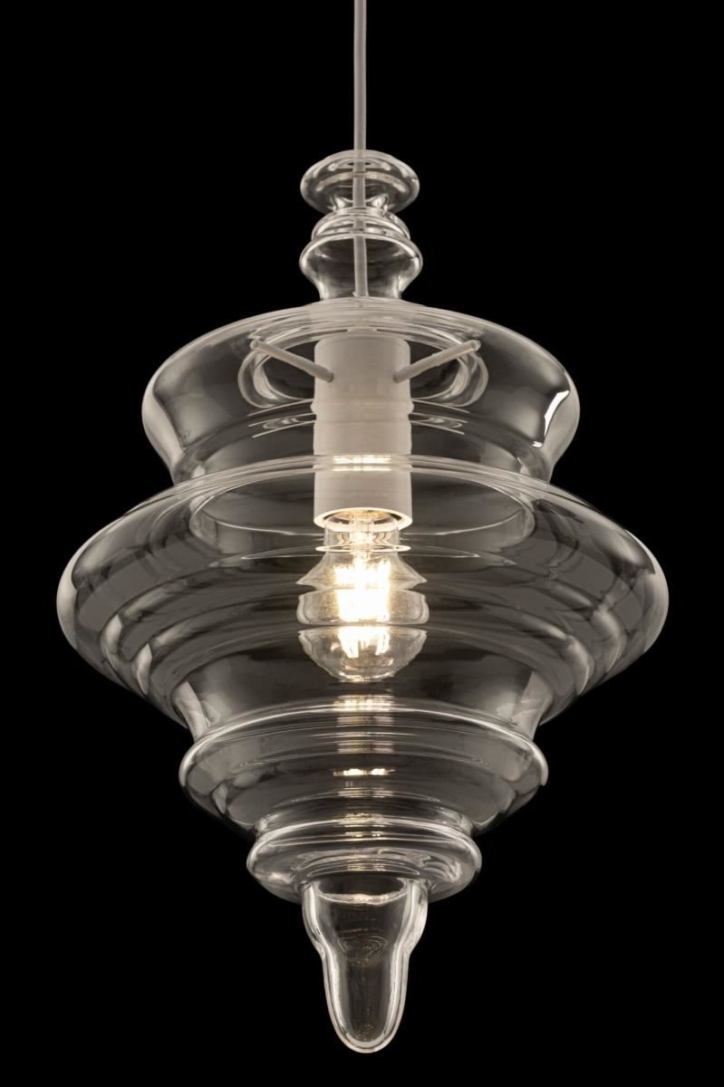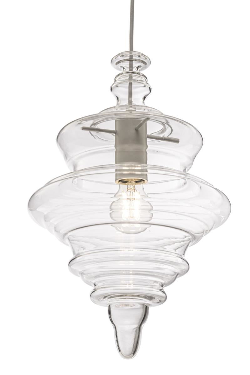 Динамичные светильники серии таят в себе силуэты классических люстр. Плафоны из стекла словно парят в воздухе, создавая впечатление невероятной легкости. Они представлены в дымчатом, прозрачном и янтарном цвете. Высоту светильников можно отрегулировать, изменяя длину шнура.