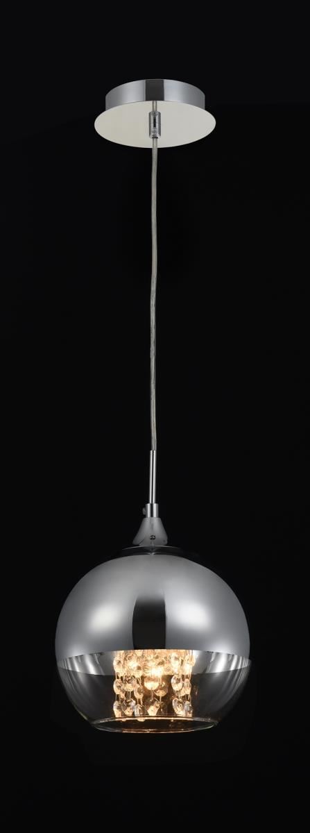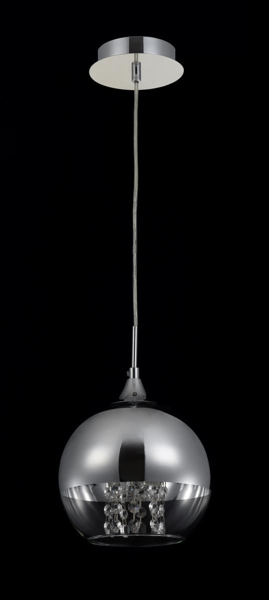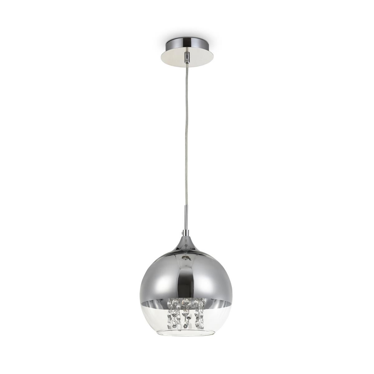 Многочисленные грани декоративных подвесок из кристаллов проецируют цветные блики на глянцевую поверхность стеклянной сферы. Арматура светильников изготовлена из металла и окрашена в два трендовых оттенка на выбор: хром и золото. Высоту светильников можно изменять, регулируя длину шнура. В серии представлены подвесы различного диаметра и люстра на 5 плафонов, что позволяет организовать как центральную, так и зональную подсветку.