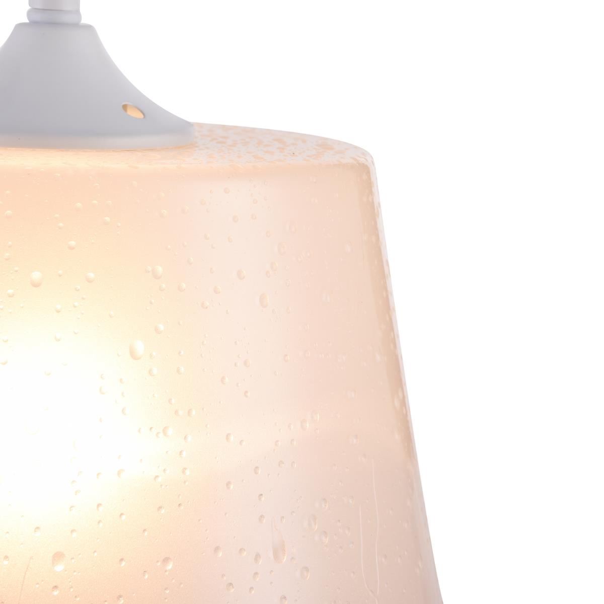Каркас из металла. Плафоны из матового белого стекла с эффектом «мокрых капель».