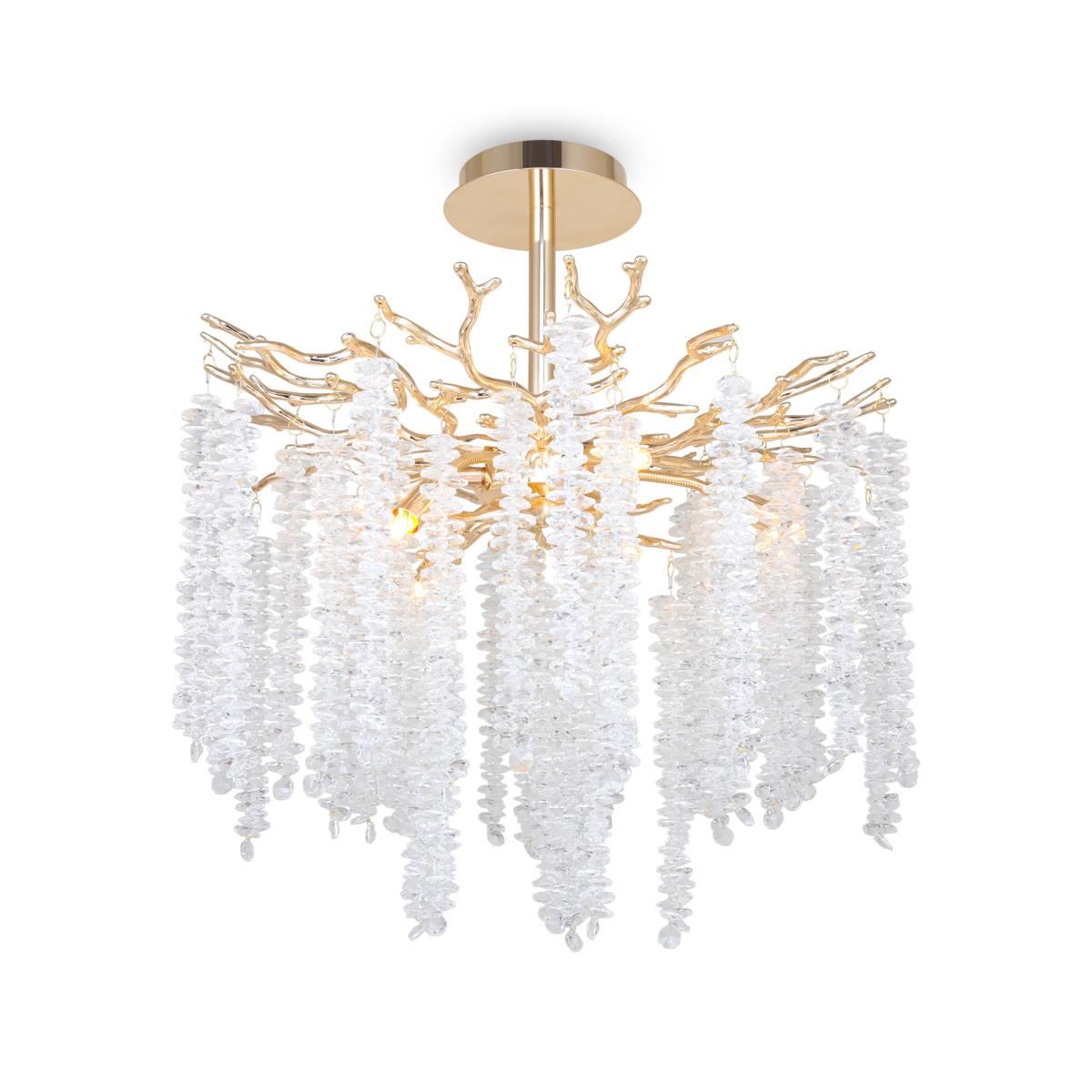 Материалы арматуры —металл, цвет — золото. Хрустальные декоративные элементы напоминают капельки - создают глубокие переливы света. Дизайн в трендовой растительной тематике. Источник света — лампа с цоколем G9 и с поворотной функцией.