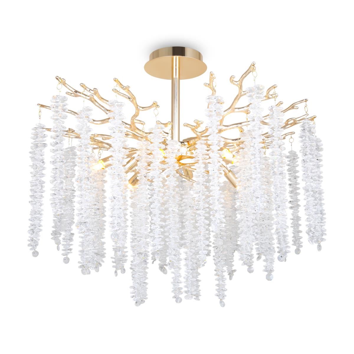 Материалы арматуры —металл, цвет — золото. Хрустальные декоративные элементы напоминают капельки - создают глубокие переливы света. Дизайн в трендовой растительной тематике. Источник света — лампа с цоколем G9 и с поворотной функцией.
