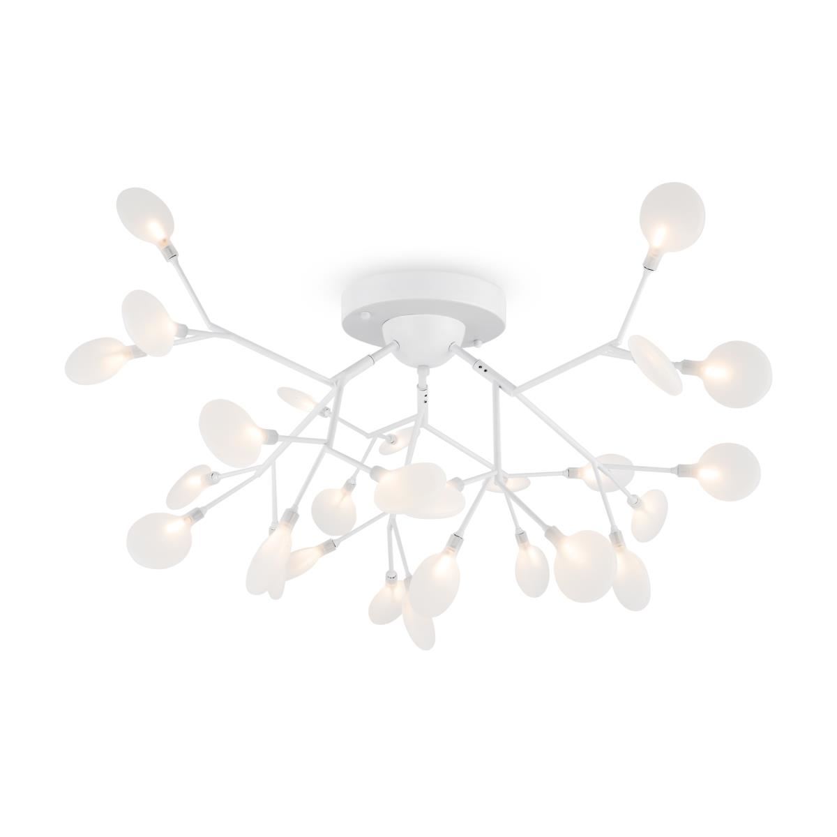 Материал арматуры – металл. Оттенки – черный, белый. Стеклянные плафоны оригинальной формы. Трендовый флористический дизайн. Источник света – лампа G4.