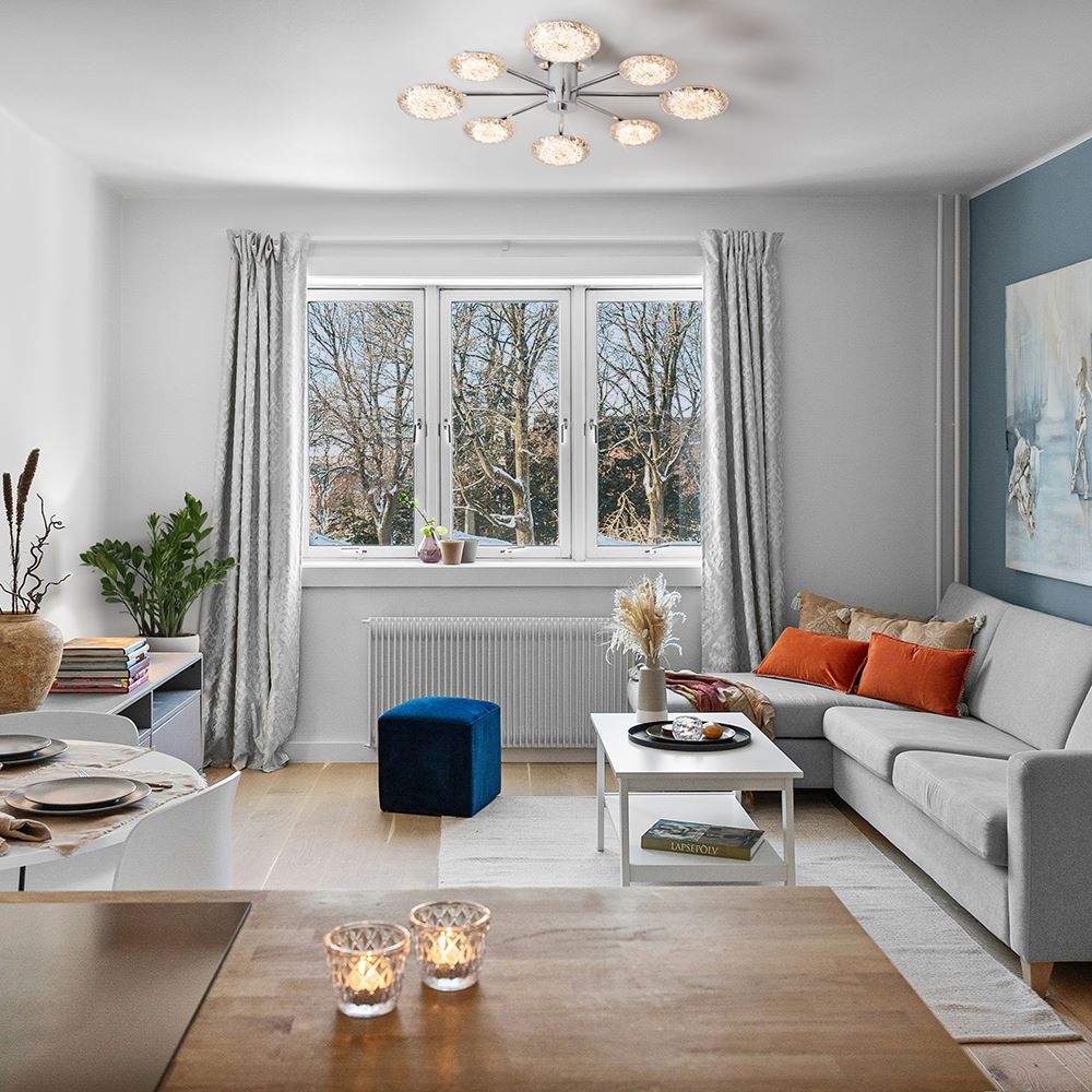 Материал арматуры — металл, цвет — хром. Потолочный светильник оснащен LED-источником света с цветовой температурой 2700К. Плафоны с рисунком из воздушных пузырьков акрила полусферической формы. Футуристичный дизайн идеально дополнит современные интерьеры и помещения с невысокими потолками.