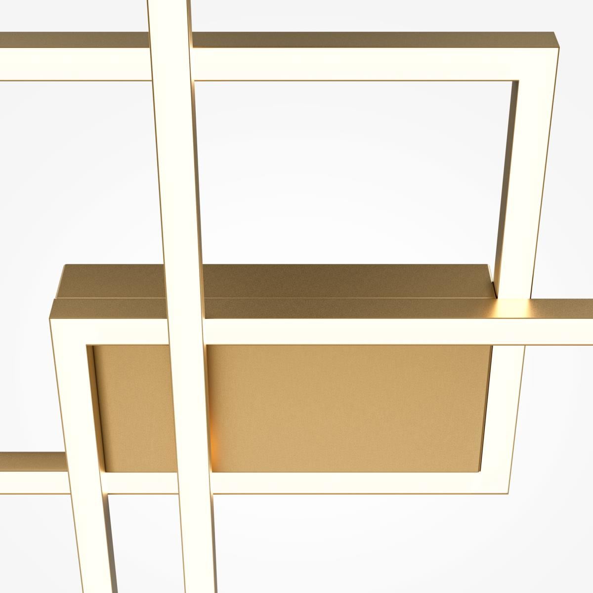 Металлическая арматура, оттенки — белый и черный. Матовый акрил скрывает интегрированные LED-источники. Геометричный дизайн: конструкция состоит из наложенных друг на друга прямоугольников.