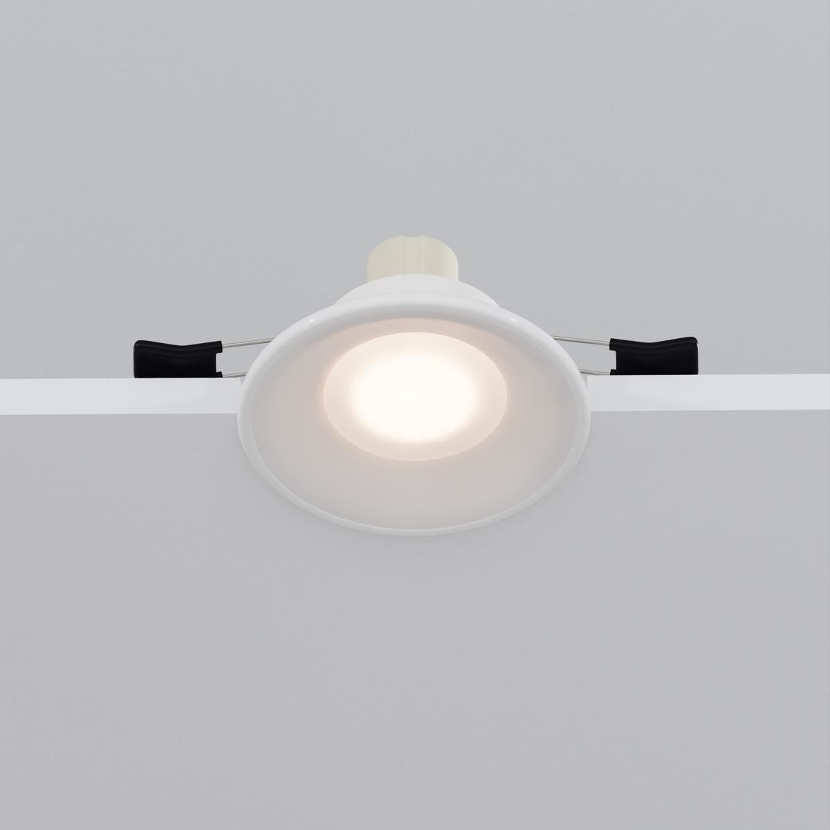 Корпус из алюминиевого сплава, покрытый акрилом. Сияющий эффект при свечении. Цвет – нежно-белый. Лампа GU10. Отсутствие стопорного кольца.