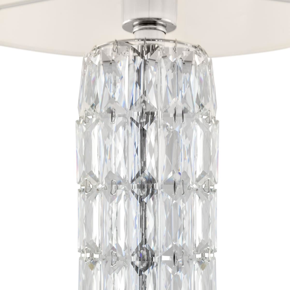 Подвески из массивных граненых кристаллов на рожках и в основании делают серию Talento непохожей на других. Арматура изготовлена из металла с хромированным покрытием. Абажуры сделаны из белой ткани, нанесенной на ПВХ. Высота люстр регулируется длиной цепи. Широкая линейка светильников, представленных в серии, включает люстру на 7 и 5 плафонов, несколько бра и настольных ламп, торшер— это идеально сформированный, выдержанный комплекс для подсветки интерьеров в стиле неоклассика, ар-деко, модерн.