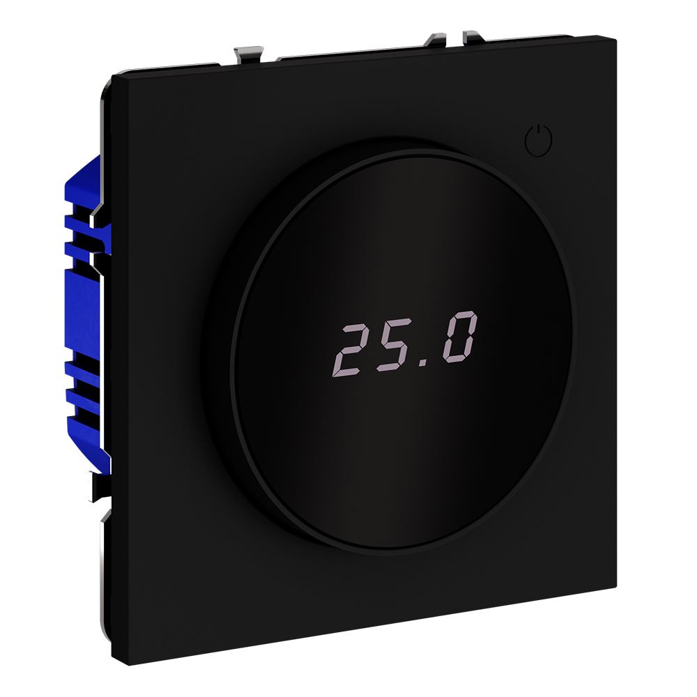 Место установки. Терморегуляторы Voltum предназначены для регулирования температуры электрического теплого пола. Актуальны как в городских квартирах, так и в загородных дачных домах без центрального отопления. Корпус. Дизайн терморегуляторов Voltum сочетается со стилем остальных электрических устройств компании. Они совместимы со всеми рамками S70. Материал внешних декоративных элементов — поликарбонат. Конструктивные особенности. Терморегулятор предназначен для работы с электрическими тёплыми полами различных типов и рассчитан на нагрузку до 3500 Вт. Устройство оснащено дисплеем, на котором отображается температура поверхности пола, обеспечивая удобный контроль системы обогрева. Устройства оснащены светодиодной индикацией режима и дисплеем, на котором отображается температура поверхности пола. Красный индикатор — «подача питания на нагревательный кабель (идет процесс нагрева)», отсутствие индикации — «заданная температура достигнута». В течение 15 минут после нагрева терморегулятор переходит в интеллектуальный «спящий режим», уменьшая яркость подсветки цифр и сокращая энергопотребление. Регулировка осуществляется вращением панели управления. Терморегулятор поставляется в комплекте с механизмом из пластиковой накладки и датчиком температуры.