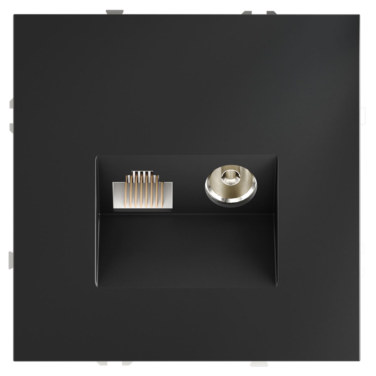 Назначение. Универсальная розетка TV+RJ45 в одном модуле обеспечивает одновременное подключение телевизионного кабеля и интернет-соединения. Конструкция позволяет сократить количество точек подключения, создавая аккуратный и эстетичный вид для вашего интерьера. Место установки. Розетка обеспечивает одновременную передачу ТВ-сигнала и проводного интернета — оптимальное решение для современных мультимедийных зон в квартирах, отелях и офисах. Корпус. Надежный и безопасный корпус из поликарбоната, стойкий к повреждениям и солнечному свету, гарантирует долгий срок службы. Модель универсальна в установке и совместима с популярными рамками серии S70 для безупречной интеграции в любой интерьер. Конструктивные особенности. Интернет разъём поддерживает подключение к сетям категории 6 и 5е, обеспечивая скорость передачи данных до 1000 Мбит/с. TV-разъём подходит для подключения к стандартным антеннам кабельного телевидения.Возможна установка в горизонтальном или вертикальном положении в многопостовые рамки. Серия S70 доступна в модульной системе: механизм, накладка и рамка поставляются отдельно.