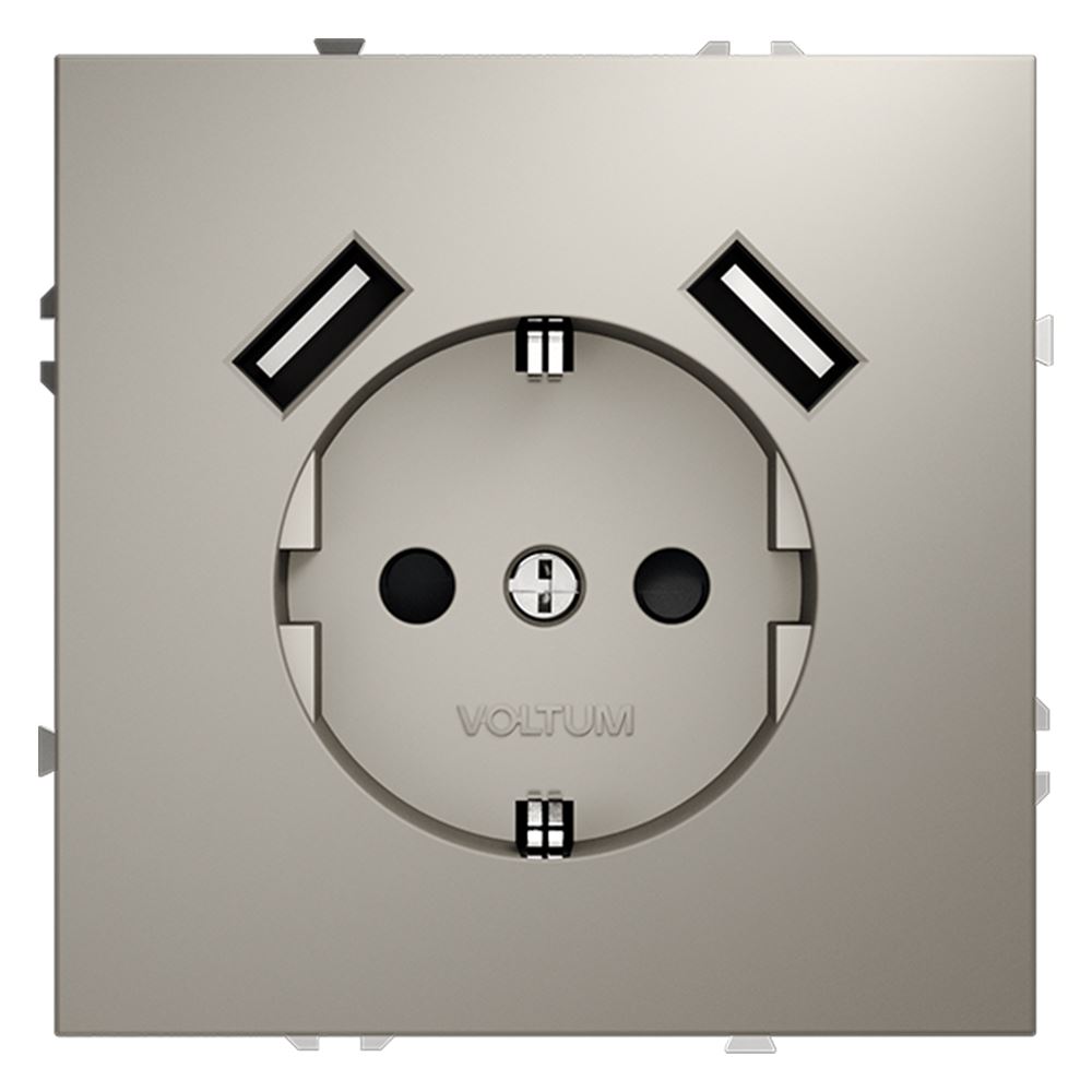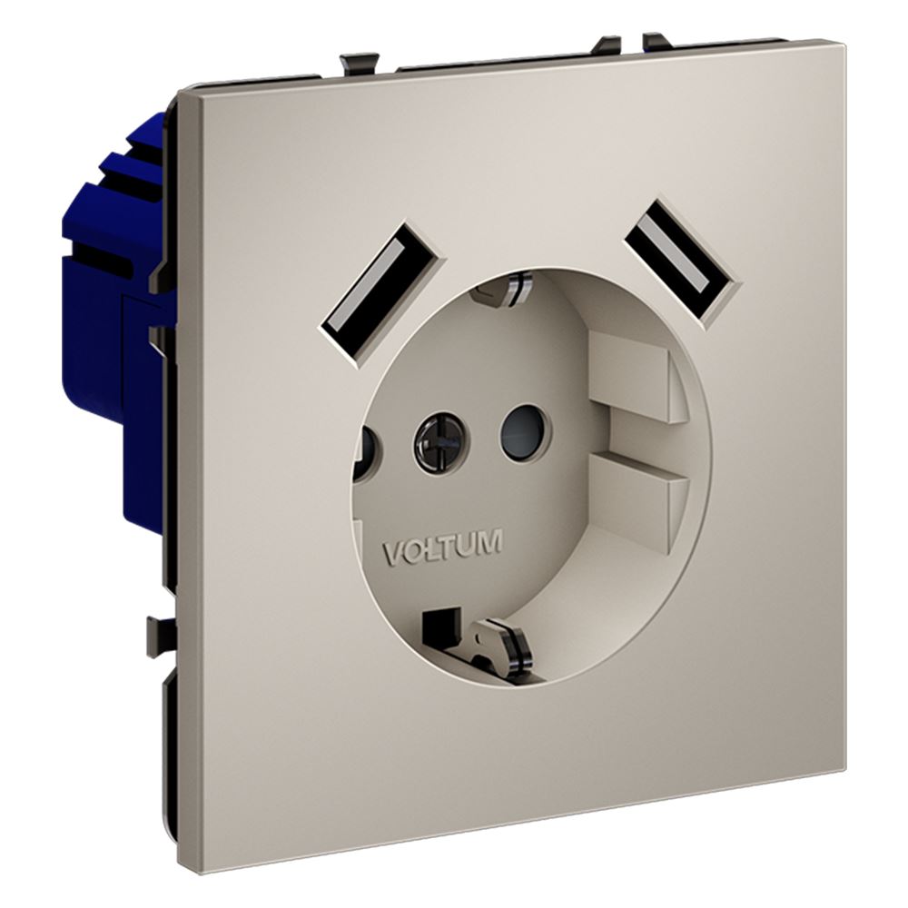 Розетка с заземлением и защитными шторками с USB A+A S70 (кашемир) / Voltum VLS040403